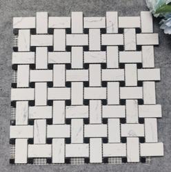 OMK ตะกร้าสานหินอ่อนโมเสคตกแต่งผนังห้องน้ำ backplash กระเบื้องปูพื้นโมเสคหินธรรมชาติ
