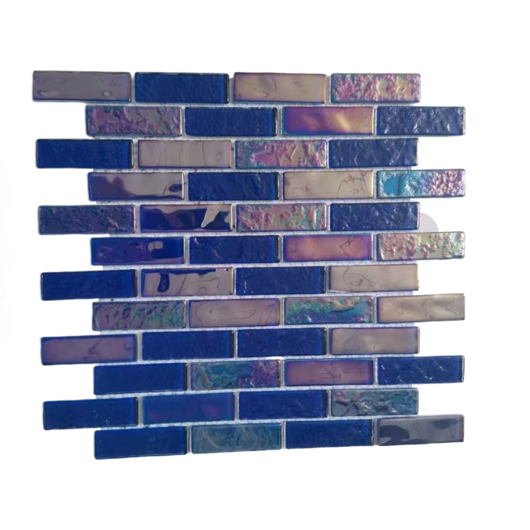 OMK Großhandels preis Hochwertige dunkelblaue schillernde Kristallglas-Langstreifen-rutsch feste Schwimmbad-Mosaik fliesen