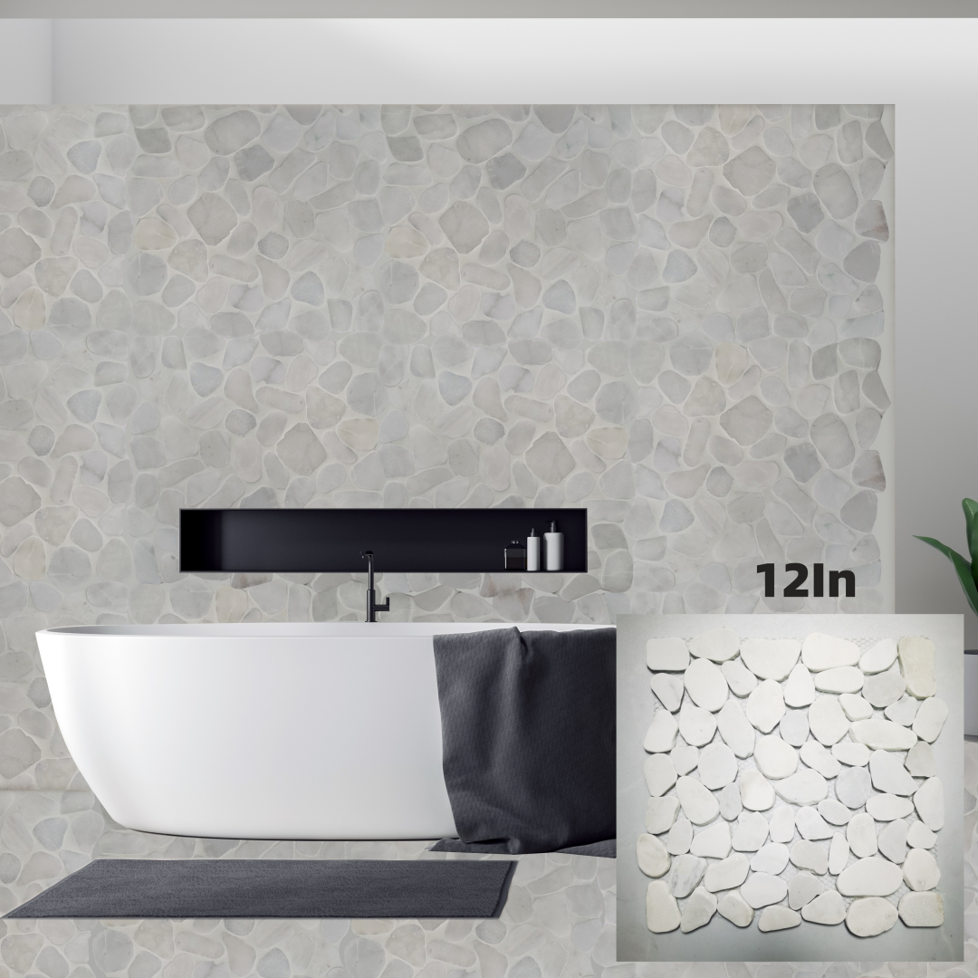 beige cremefarbe kieselsteine rund rutschstein marmor stein gemischtes glas mosaik wandbild dekor mosaik-wandfliesen