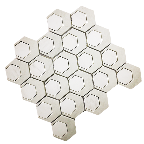 คุณภาพสูง Carrara หินอ่อนสีขาวหินโมเสคห้องครัว Backsplash ห้องน้ํากระเบื้องห้องน้ําหกเหลี่ยมโมเสก