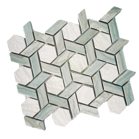 โมเสคหินอ่อนแข็ง 3D แบบกําหนดเองโมเสกหกเหลี่ยมและลายลายขายส่งโมเสคติดผนังสําหรับขาย